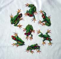 100% cotton seven frog with sun glasses t-shirt. These shirts are light weight and really cool. X-Small (2-4) Small ( 6-8)