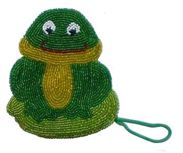 A great way to get the converstion hoppin ! This happy faced colorfully beaded coin purse of green and gold is completely beaded on both sides. Has bottom zippered closing to safely keep all your coins.