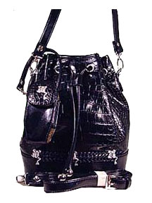 Fashionable and Functional is this “Black Frog Croc-Like Drawstring Handbag”. Crafted from croc-style embossed realistic leather-like material, this purse will add a touch of casual elegance to your handbag collection. The exterior features three small silver frogs perched atop an intricately braided woven band, near the base of the bag, which has four grommets on the back. The drawstrings have two attractive silver beads on their ends. The interior is fully lined with a patterned silky-like finish. Three inside compartments feature one zippered and two slip pockets. Included is a detachable matching cell phone holder and an extra 44″shoulder strap.