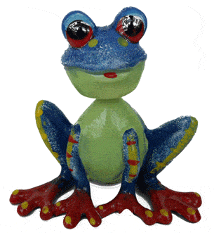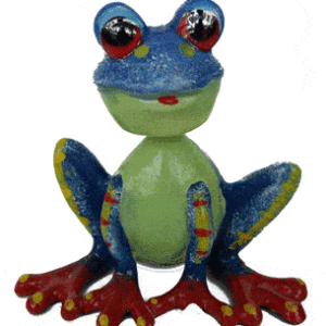 Cute and Colorful and yes, he Bobbles. What more can you ask for? He’s a rainbow of brilliant colors…blue head, chartreus body, big, floppy,red & yellow feet, blue legs and plaid back. His large bulging eyes will jiggle as he bobbles on your home or office desk. Cute as can be!!