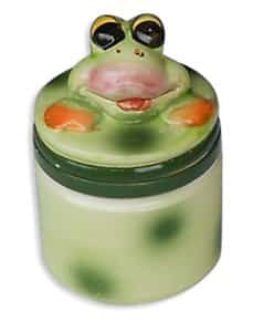 It’s your choice. What would you like this attractive Frog Ceramic Jar to hold? Suitable for every room in your home. It is marbleized green with a whimsical frog on its lid. (Not Safe For Food)