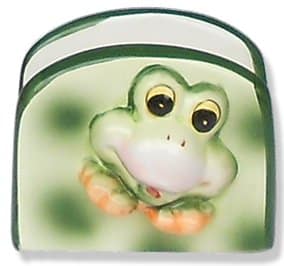 What kitchen table would not be proud to display its napkins in this adorableFrog Napkin Holder? Green marbleized color with whimsical smiling frog shown on front.