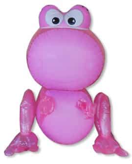 This big-faced happy frog with large bulging eyes, will stare back at you whether he is in a pool, on a festive party table, or just hanging from your ceiling. He comes in assorted colors. Has a loop on his head for hanging, and also makes a squeaking sound when pressed. (not meant to be used as a flotation device)