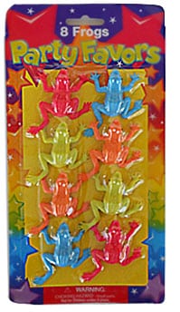 All done up in a package of eight(8), are the brightly colored little plastic frog party favors. What a great gift for your guests…They will surely enjoy the big array of froggies.