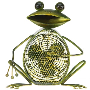 Don’t worry, be happy, is the message our witty Frog fan conveys. With his bulging eyeballs, goofy grin and jaunty attitude, the Frog fan will definitely bring about a metamorphosis in your decor. This amusing amphibian’s working fan provides a serious amount of cool-he gives new meaning to the term, green appliance! If you’re looking to add a touch of frog home decor and put the fun back in function, bring this charismatic charmer home to your lily pad today. Sure, Frog will make an awesome gift for any little tadpoles in your family, but he’s also a charming choice for anyone in your life who loves unique and whimsical home decor. Fan has two speeds. No Assembly Required.