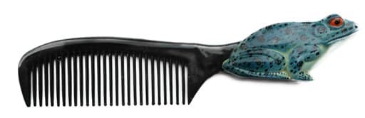 This cute little hand painted frog comb will complete your froggy personal hair care. It also matches the frog Hairbrush and Mirror. Molded from durable plastic.– Assorted styles & colors.
