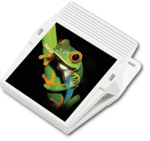 Indoor/Outdoor Small Magnetic Clip with magnet on the back. Bright green frog on a dark background. Great for cliping notes on your frig.