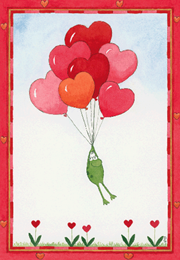 Frog on Heart Balloons Card