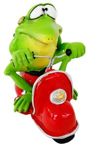 Here he comes folks, riding his Red Scooter, headed straight to your door. The Scooter has great detail, even a back, as well as a front light. Please show him how to get to your house. Made from poly-resin.