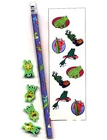 Let that special frog lover have this really cool froggy fun pack. Comes with one frog pencil, a sheet of frog stickers and 4 frog erasers. Great for teachers!