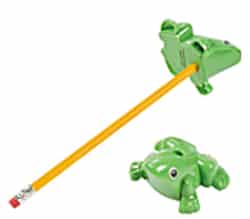 A cute green frog pencil sharpener is a handy tool to keep on your home desk or take to school—- large enough to catch pencil shavings. Great party favor too !