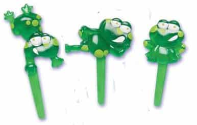 These colorful green Frog Puffy Picks have versatile uses. They can be used for picking up hors d’oeuvres, cheese balls, olives, etc. Another great use is to insert them into your cake creations, especially cup cakes, as a charming and distinctive topping. They are made of sturdy plastic, easy to clean, and completely re-usable. They come in 3 designs, each one, eye-catching. Set of 12