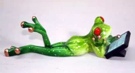 Our tech savvy polystone frog is relaxing and enjoying E-Reading, or face timing, or surfing the web you couldn۪t dream up a more perfect figurine or gift for a frog collector, geeky or not