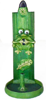 This fantastic Frog Standing Incense Burner is entirely hand crafted and proudly made by talented artisans from around the world. It features a hand sculpted little green frog, clutching a shiny black gem stone. He has a very whimsical look: Big bulging eyes that jiggle when he is moved. He sits above the stick burning incense holder, that sits on a circular tray. Perfect gift for frog lovers. ( Can also be suitable for wall hanging.)