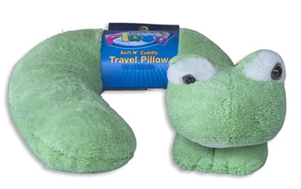 Frog-tastic ! A product your kids will actually use and LOVE! Softest froggy neck pillow is ideal for froggy kids traveling by airplane, auto, or airboat!