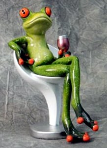 If You Have This Frog Figurine a Title, It Would Have to be Just Chillin This Cool Polystone Collectible Has a Green Frog with Long Legs Sitting in a Chair with a Glass of Wine