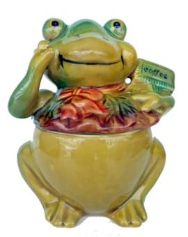 This smiling little froggy, with his hand on his cheek, as if he can’t remember where he put something, invites you to just uncover his lid, and there you will find all your missing items.