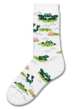 Who wouldn’t enjoy wearing these Froggy Play Socks? They are designed with little frogs in several play positions: They are swimming, diving, or just hanging out, having a good time. They are very funky and your kids will be considered way cool for wearing them!! Size: Sock size: 6-11