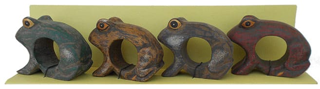 All Hand Carved and Hand Painted, these luxury-sized variegated green napkin rings are most unique. The large round napkin holder ring allows you to be very creative in how the napkin is placed. Its size also makes these napkin rings very impressive. Adds rustic charm to your table! Comes in sets of four (4)
