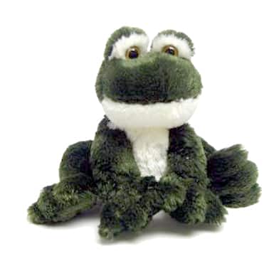 Super Soft — Super Cuddly — Super Sensational, is this adorable little Froggy. He is made of soothing chenille plush in inviting colors of dark green and white. Your child will be thrilled to carry him around as his very own pet. His bulging, bright glass eyes and his flopability, as well as his hugability, makes him a Super Charmer!!