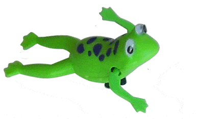 Swimming Wind Up Frog toy has his own style of swimming. He’s a little slow because he doesn’t use his back legs at all while doing his crawl stroke. But, cute he still is–with his green plastic body, purple spots and wiggly eyes. Collect all of our little frog swimmers in our collection of wind-ups!