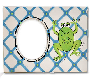 A great froggy frame for a favorite photo! .Handpainted raised ceramic frame. Insert oval holds 3.5″ x 5 ” photograph