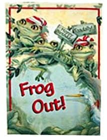 Frog out! Plastic Hoppy Birthday Toadally table cover.