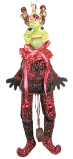 Jumping Jack Glitter Frog Prince Ornament (Burgundy)