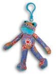 This adorable lavender and blue all over-print clip on mini frog is made of soft plush. He has Velcro hands, soft fuzzy soles, black beaded eyes, a happy grin and a big blue hook for hanging. Makes a great party favor.