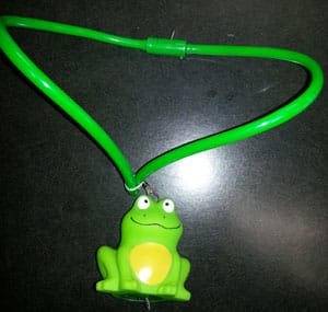 He’s Oh So Cute— The frog and the lanyard both blink and light up. There is several different light up Multi patterns. Great for any party or just plain fun.