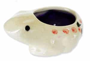 This Medium Sized Frog Shaped Candle is made of porcelain, with hand painted flower design on sides and back of. the candle. The color of the candle is Orchid—Pretty, Indeed. (assorted colors and scents)