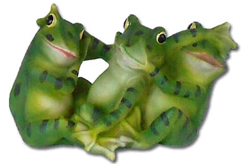 This is an unusual rendition of the “No Evil” frog scenario.