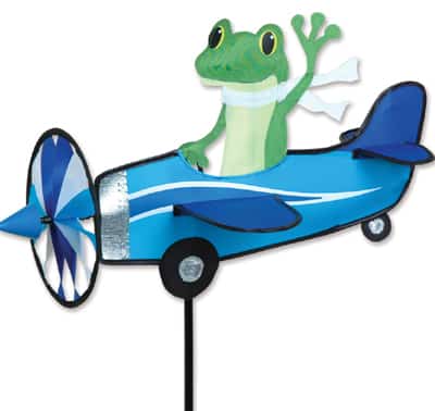 Colorful–Unique–Tree Frog Spinner Easy to Assemble-No Gluing-Comes with sturdy 8 mm fiberglass poles and ground stake- Let our adorable tree frog pilot wave to all admirers as the wind spins him round ‘n round!! GREAT FUN!