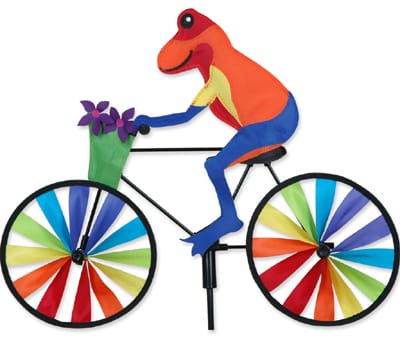 A Poison Dart Colorful Bike Rider Spinner will capture the hearts of all as he Spins, Spins, Spins on his Bike in the wind–Easy assembly-No Gluing-Comes with sturdy fiberglass poles and ground stakes. ENJOY THE SPINNING ACTION!!