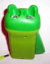 This highly functional and BRIGHT battery operated flashlight. This adorable frog eyes are the flashlight how cool is that ? Yet the BEST part is that you DON’T need batteries to use it.!!! Simple thumb operated handle lights this baby up even if the batteries are DEAD. Works when you need it.