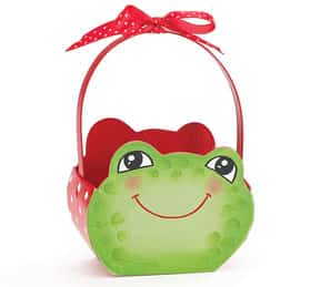 This hand painted adorable frog baskets is great to create a frog surprise they will never forget. Super Cute.