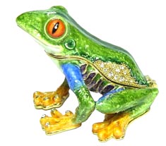 This special frog has a beautiful luminous enameled finish with sparkling jeweld sides. A lovely and charming jewely box indeed.