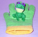 Come splash with the froggies! This nice terry bath puppet is lined with a spongy knit, so it makes a perfect bath washcloth mitt.