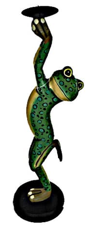 Tall Tommy the Frog’s Tealight Holder, beats them all! Tommy the Frog is not only tall, but in his green circled body pose of one foot in the air, carrying a tealight holder , ready to display your candle, he is a frog above all! Great to give as a gift or better yet, gift yourself and give your guests lots of enjoyment!