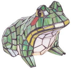 This adorable lighted frog accent lamp is created from pond green stained art glass