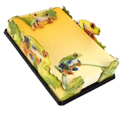 Acrylic note box has laser cut sides to make the tree frogs really stand out. It holds 200 sheets of 4″ by 6″ paper with a frog design on the bottom. Perfect for the home or office!