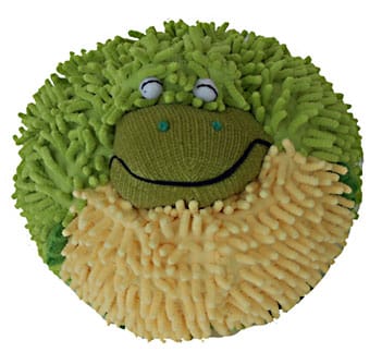 Proud to present “WALLY the WOLLY FROG”———He is a round, pudgy, ball of fun. Lime green & Sunny yellow tufts of springy, popping, chenille wool, make up his body. Add to that a sweet “sweater” face with a wide friendly grin, and Whah Lah, Here’s Wally. Carry him and Cuddle him—–Throw him on your bed as an extra pillow (he’s that soft) ——Just Enjoy—He’s a Gem!