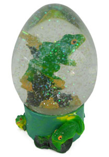 In an egg-shaped Water Globe, is our little Green Frog perched on a tree branch. The Globe rests on a Green base with two little matching Green Frogs on its side. Of course, when the globe is inverted, glistening little crystals appear. Everyone loves a Water Globe, and this is a lovely rendition.
