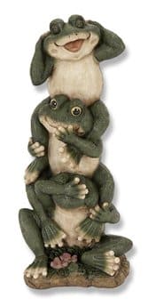 The Classic “Hear No Evil – Speak No Evil – See No Evil”–But This Time With Cast Resin Frogs Sitting One On Top the Other to Bring a Bit of Humor to All that Visit the Garden or Elsewhere.