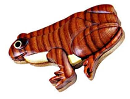 An attractive, all hand crafted, wooden frog magnet, with a smooth shiny finish, is ready to adhere to your kitchen fridge, or other metal surface.